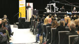 Glen van As, DMD, of British Columbia, on the Live Dentistry Stage, explains his case of laser removal of porcelain veneers. ‘It’s always an honor to lecture in your own home city,’ he said.