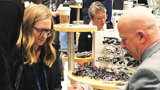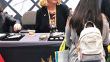 Marty O’Rourke of Designs for Vision helps an attendee pick out the best loupes to fit her individual needs.