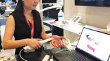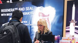 Winnie Co of Hiossen Implant Canada demonstrates one of the booths many products on display.