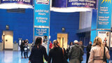 Attendees enter the Pacific Dental Conference exhibit hall on opening day.