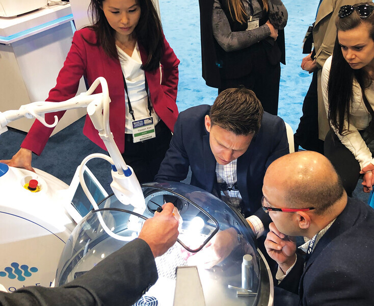 Aaron Shumaker of Convergent Dental demonstrates the Solea all-tissue laser at the Patterson booth.