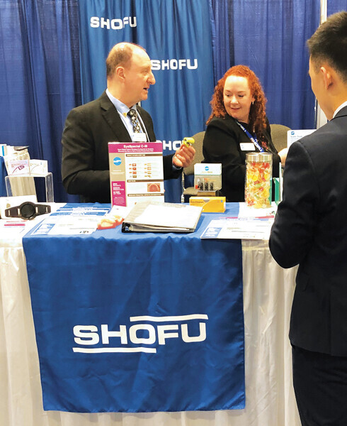David Goldshaw and Sarah Bermel of Shofu show off the company’s newest equipment.