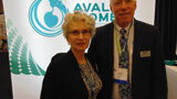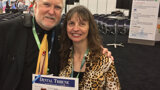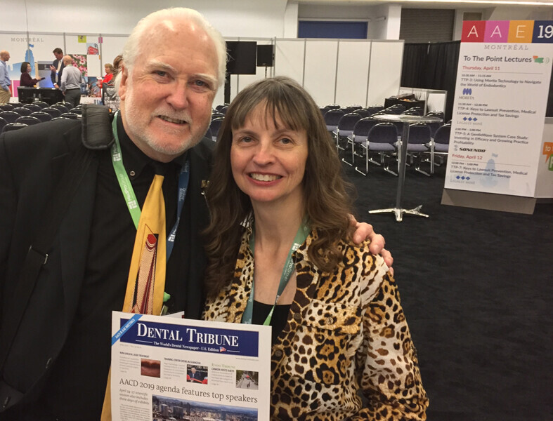 Dr. C. John Munce, left and Marianne Munce visit the Dental Tribune America booth at AAE19. (Photo: Fred Michmershuizen/Dental Tribune America)