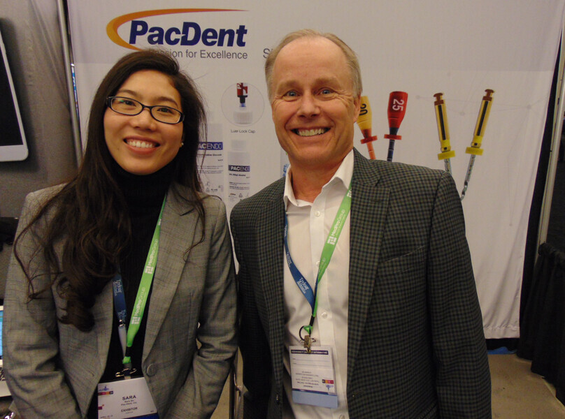 Sara Qu, left, and Michael Nordahl of Pac-Dent. (Photo: Fred Michmershuizen/Dental Tribune America)