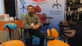 Jason DeCosta of RGP, a company showcasing ergonomically designed chairs with special arm supports for endodontists. (Photo: Fred Michmershuizen/Dental Tribune America)