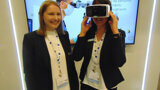 Christine, left, and Marie of Zeiss. Marie is wearing goggles that are part of the digital communication tools available with the Extaro 300 dental microscope. (Photo: Fred Michmershuizen/Dental Tribune America)